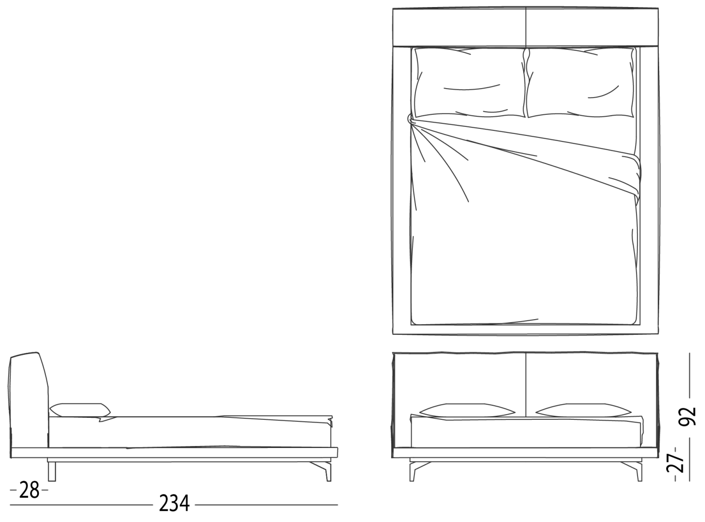 Padded headboards and frames enhance the design, providing comfort and support, while meticulous details and sophisticated finishes make each bed a distinctive element.